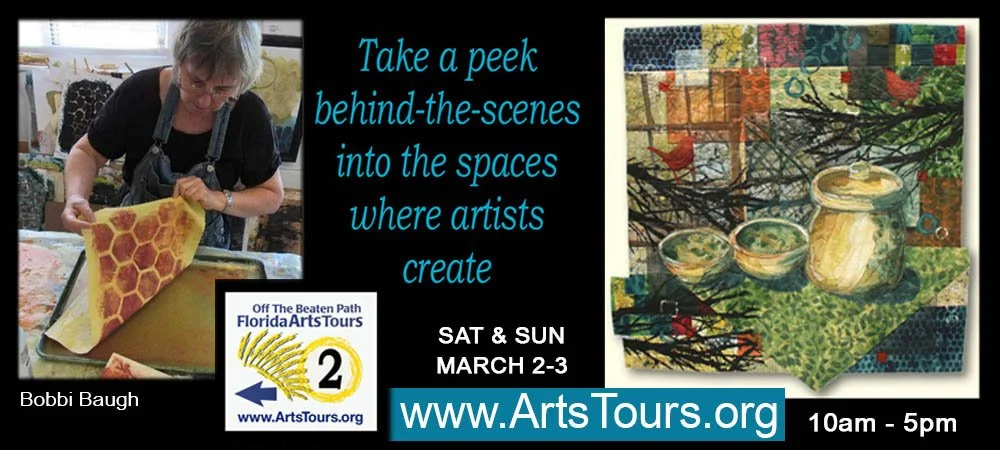 To readers who are near Central Florida, I hope you will put DeLand’s Art Studio Tour on your calendar. It’s a great way to meet artists and see where the art is created. I am proud to be on the tour and will welcome visitors to my studio.