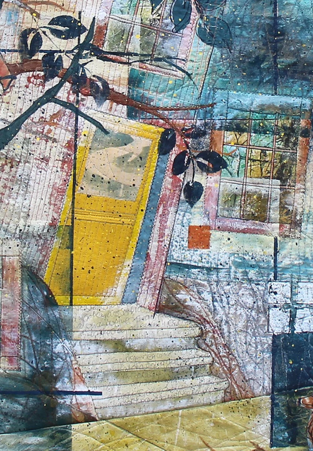 Three Yellow Doors Textile Collage / Art Quilt 48” x 58”