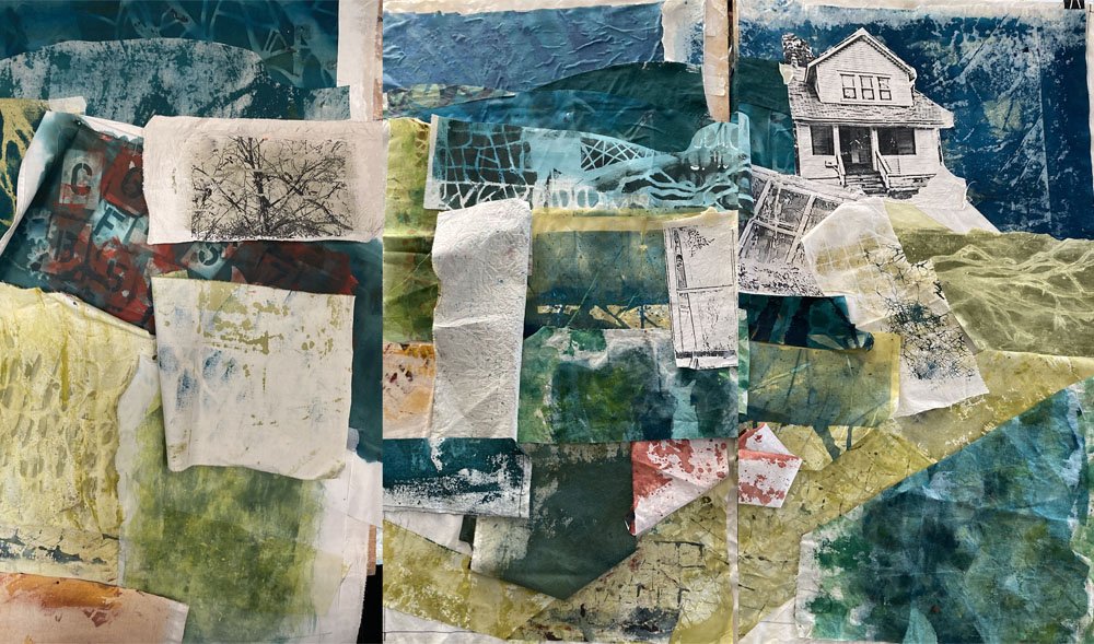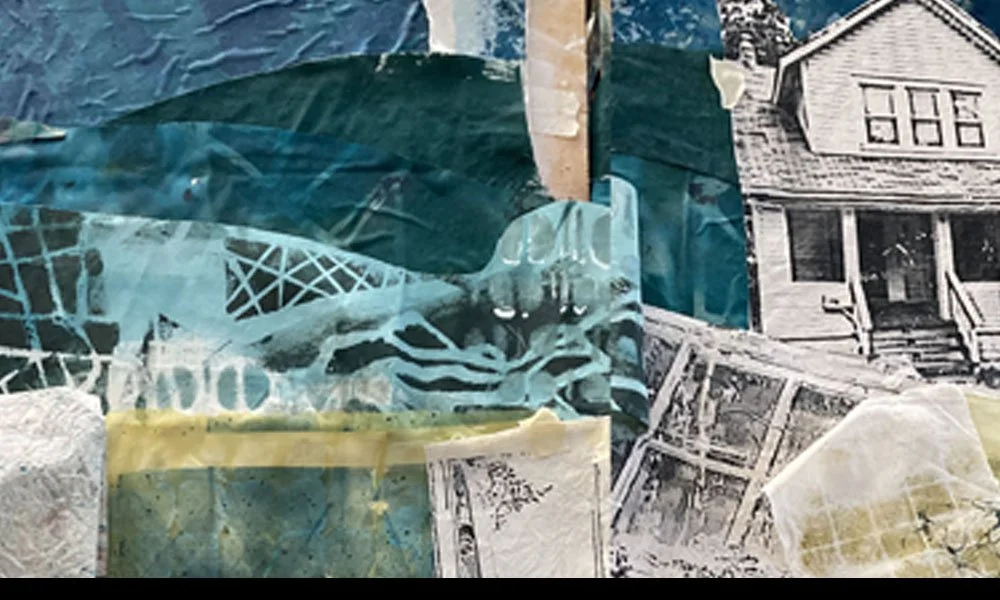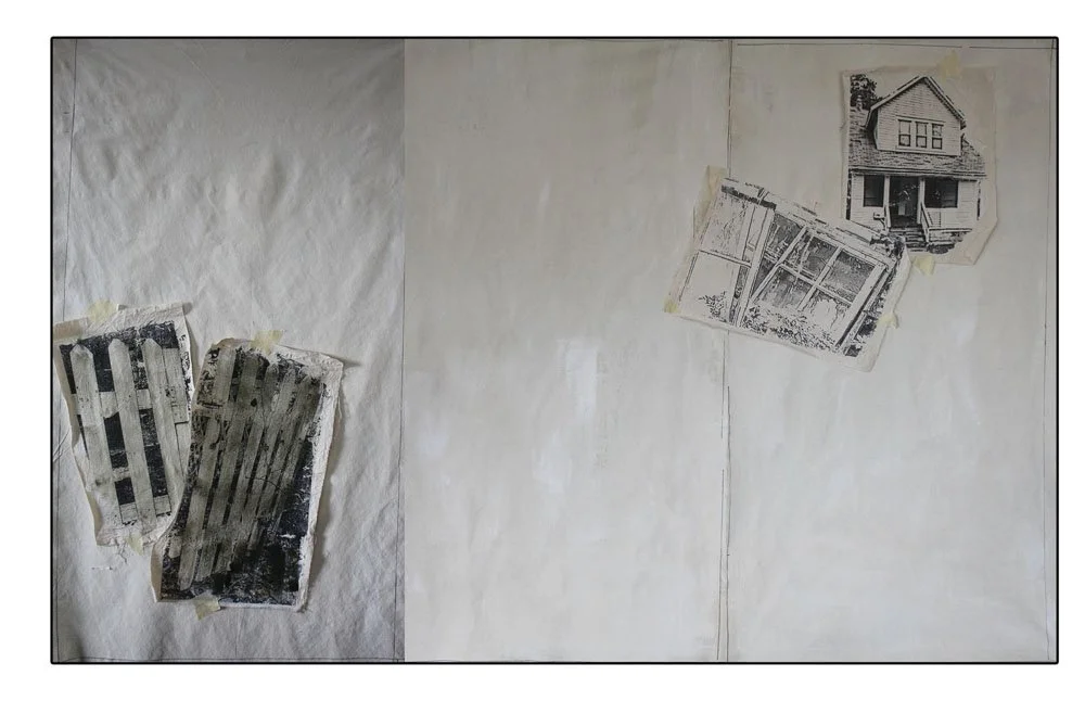 THE CONCEPT I know I am interested in creating a work that involves a trip – real or metaphorical – back to a home. I know I want it to be a large work. (I’m aiming for about 44-48”H x 60”W) So, just to get things rolling, I’ve created photo transfers of a generic little house, and a gate through which we must pass.